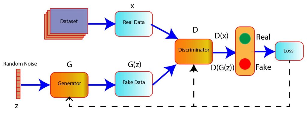 This ongoing cycle of iteration and adaptation characterizes the dynamic interplay between the two parties (generator and discriminator) in a Generative Adversarial Network (GAN).