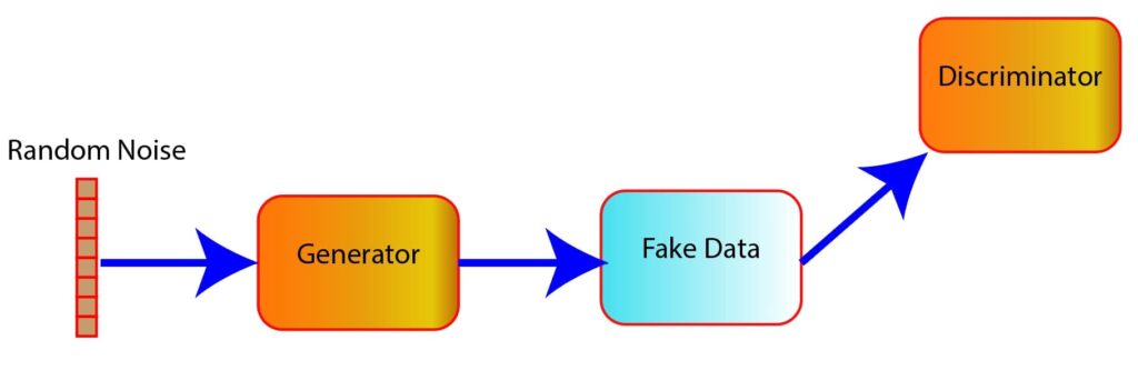 In the figure, a random noise z is passed as input in the generator model. The generator generates fake data G(z) from the random noise.