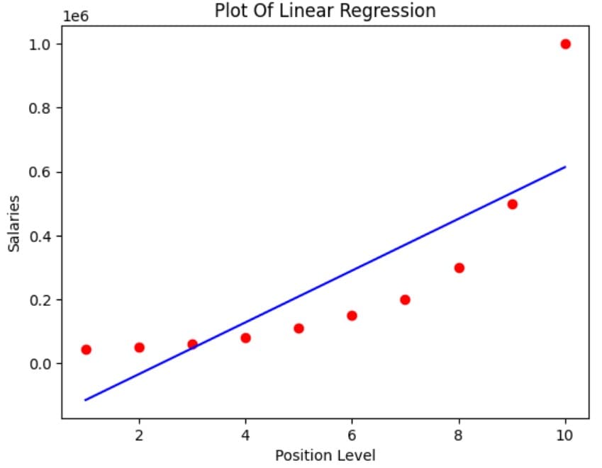 The table shows the different job positions, their levels, and corresponding salaries. The table has four columns: Index, Position, Level, and Salary. We will use the ‘Level’ column as the independent variable and the ‘Salary’ column as the dependent variable.