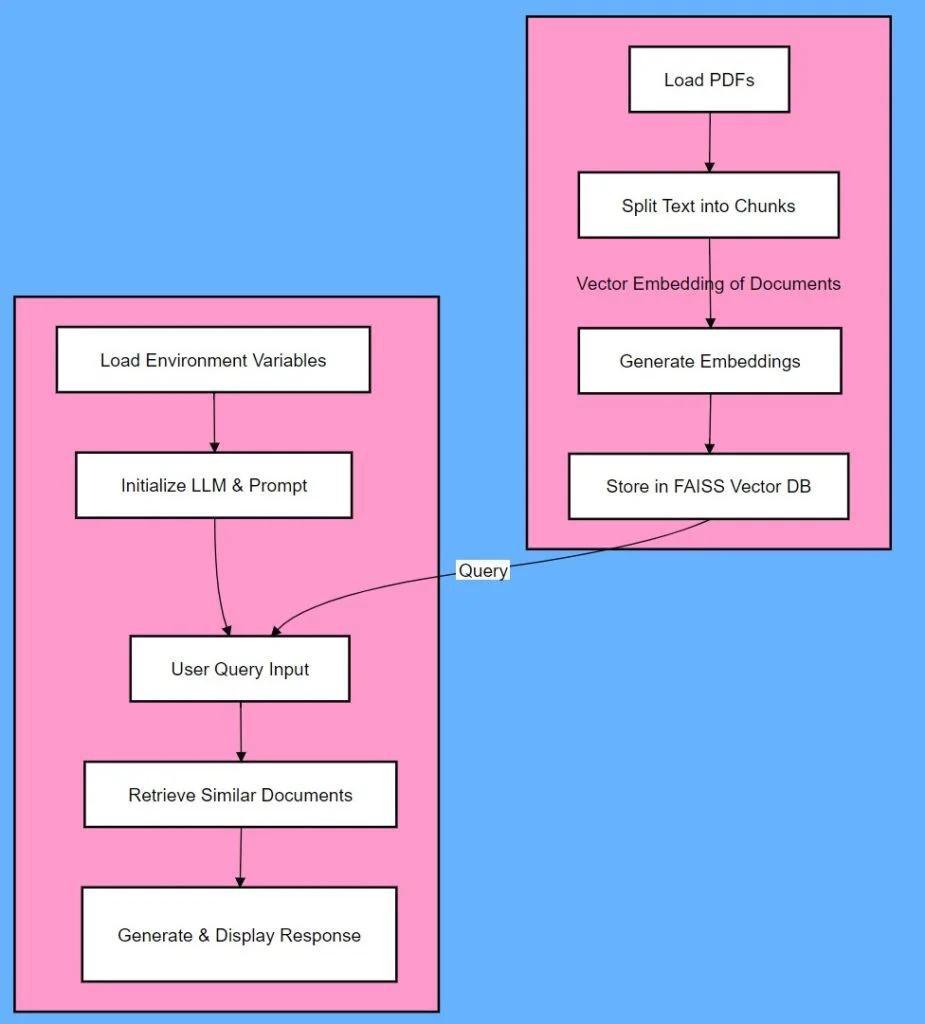 We started by breaking PDFs into smaller chunks and converting them into vector embeddings, which were then loaded into a FAISS database for efficient retrieval.