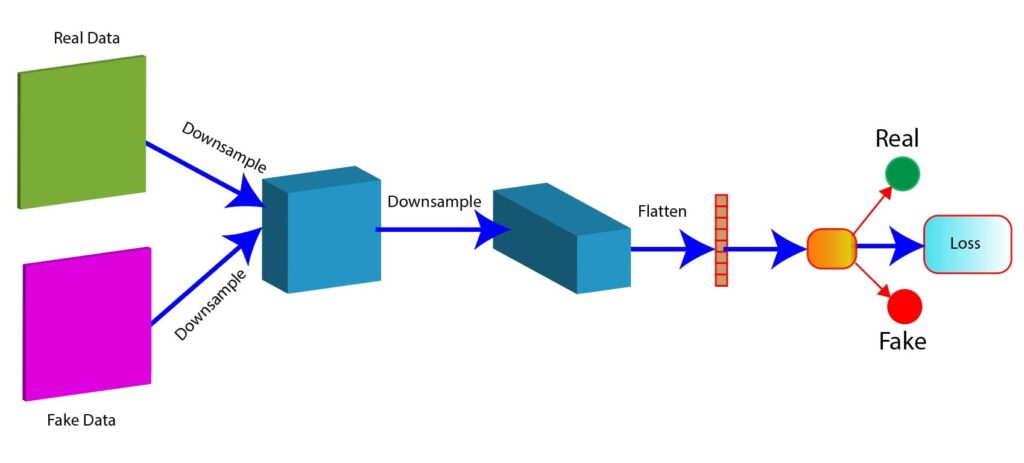 The main objective of the discriminator is to accurately differentiate between the two categories: real data and fake data. A discriminator network takes both the fake data (generated by the generator) and real data as input, performs binary classification and assigns a label to each sample.