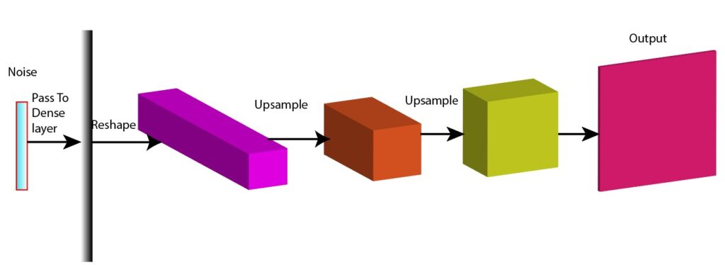 Now, you might wonder what is happening inside the generator and how it creates fake data from random noise. Let us have a look at the following image to get a high-level overview of what is happening inside the generator network (Figure 2).