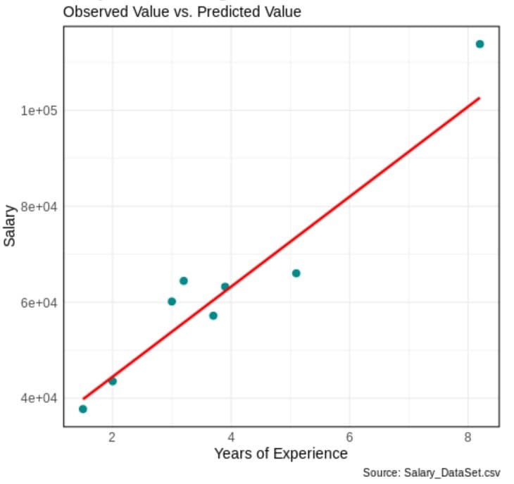 panel.border = element_rect(color = "black", fill = NA, size = 1))The figure below (Figure 3) shows a graphical comparison of the observed salary and predicted salary values.